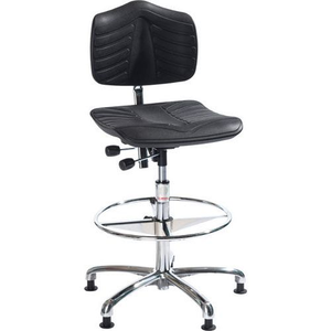 Polyurethaan stoel voor de werkplaats Premium, Zitting materiaal: Polyurethaan, Stoel model: Hoog, Min. zithoogte: 59 cm, Max. zithoogte: 85 cm, Kleur: Zwart, Zitbreedte: 43 cm, Zitdiepte: 44 cm, Rugbreedte: 39 cm, Rughoogte: 30 cm, Onderstel materiaal: Aluminium, Asynchroontechniek: ja, Max. belasting: 110 kg, Recyclebare verpakking: Ja - 100%, Gerecyclede verpakkingen: 70 %, Recyclebaar product: Ja - 100%, Gerecycled product: 8 %, Rughoogte-instelling: ja, Stapelbaar: nee, Model: Hoog, Zitneiginstelling: ja, Zithoogte verstelling: ja