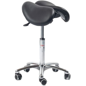 Stoel is zeer geschikt voor het bieden van optimaal comfort Voorzien van een zitting in twee delen die de druk op de wervelkolom en het bekken verlicht Biedt de mogelijkheid om veel langer comfortabel te zitten dan op een normale zadelstoel Zitting eenvoudig in hoogte, hoek en breedte te verstellen, met ergonomisch zadel waarbij in de ruiterhouding de wervelkolom in zijn natuurlijke curve blijft Zadel dat tevens de bloedsomloop naar de voeten en benen verbetert, zadel gevoerd met echt leer voor een duurzaam en makkelijk te onderhouden oppervlak