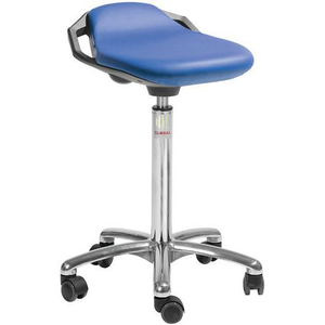 Kruk met aluminium onderstel en goed rollende wielen Zitting bedekt met koudschuim en imitatieleer Comfortabele stoel met handige handgrepen zodat de stoel eenvoudig te verplaatsen is