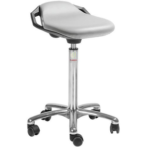 Kruk met aluminium onderstel en goed rollende wielen Zitting bedekt met koudschuim en imitatieleer Comfortabele stoel met handige handgrepen zodat de stoel eenvoudig te verplaatsen is