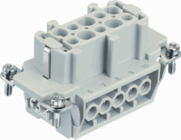 Harting HAN E contactblok v rechthoekige connect., uitvoering elektrische aansluiting schroefaansluiting, contactuitvoering contrastekker (female), 6 polen, nom. (meet-)stroom In 16A, aansluitbare geleiderdoorsnede eend 0.75 - 2.5mm², aansluitbare geleiderdoorsnede fijn 0.75 - 2.5mm²,