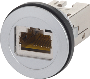 Harting Device Connectivity modulaire connector, zilver, categorie 6A (IEC), uitvoering jack (chassisdeel), connectortype RJ45 8(8), geschikt voor massieve ader, afgeschermd, geschikt voor ronde kabel