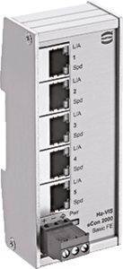 Harting SNI Ha-VIS eCon netwerkswitch, (bxdxh) 46.5x27.3x113.5mm, DIN-rail, ethernet, 5 poorten 10/100 Mbps RJ45, beschermingsgraad (IP) IP30, layer 2