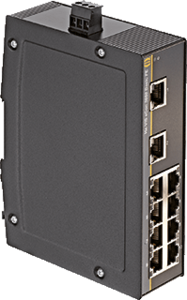 Harting SNI Ha-VIS eCon netwerkswitch, (bxdxh) 38x107.5x142mm, DIN-rail, ethernet, 10 poorten 10/100 Mbps RJ45, beschermingsgraad (IP) IP30, layer 2