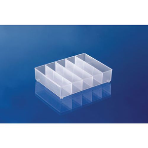 Bak A75, Materiaal: Polypropyleen, Voor model: Assorter 55, Lengte inzetbakje: 79 mm, Breedte inzetbakje: 109 mm, Hoogte inzetbakje: 24 mm, Kleur: Transparant, Aantal inzetbakjes: 48, Totale inhoud: 0.2 L, Gerecyclede verpakkingen: 50 %, Recyclebaar product: Ja - 100%