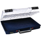 Koffer met dubbel deksel met U-profiel, zodat de inhoud tijdens het transport op zijn plaats blijft. Het dubbele deksel kan tot 5 vellen papier van 80 mg tussen de 2 delen bevatten. De koffer kan worden gevuld met een inzetbakjes met een hoogte van 80 of schuimrubberplaten. Uitgerust met ritssluiting en een handgreep.