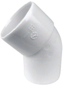 WAV PVC L-BOCHT 45 WT 32 M/S - WAV fitt m/2 aansl 1-del, le 1mm, bocht, uitw buisdiam aansl 32mm