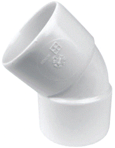 WAV PVC L-BOCHT 45° WT 40 M/M - WAV fitt m/2 aansl 1-del Wadal, le 1mm, bocht