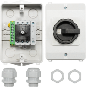 Asn - Sontheimer lastscheider, breedte 100mm, apparaatbouwvorm compleet apparaat in behu, uitvoering als hoofdschakelaar, uitvoering als werkschakelaar, vergrendelbaar, nom. continustroom Iu 25A, 4 polen, beschermingsgraad frontzijde (IP) IP65, bedieningselement zwart,