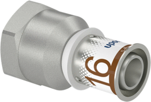 Uponor S-Press PLUS fitting met 2 aansluitingen 1-delig, lengte 47mm, recht, uitwendige buisdiameter aansluiting 16mm, nom. diameter aansluiting 1 DN 12, aansluiting 1 messing, aansluiting 1 persmof, nom. diameter aansluiting 2 1/2" (15), aansluiting 2 binnendraad cilindrisch B, KIWA-keur,