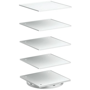 Draaisteun voor tafel ESD. Deze steun is geschikt voor twee opslagkasten naar keuze, hoogte 290 mm en 550 mm, rug aan rug. De kasten moeten afzonderlijk worden besteld. Het geheel bestaat uit een basis op kogellagers en een bodemplaat. Geleverd met een aansluitsnoer voor aarding. Maximale belasting: 50 kg.