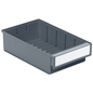 Ladebak. De ladebakken zijn ontworpen om te passen bij alle legborden, kasten, draaiende steunen en standaard industriële werkplekken. Ons assortiment bevat 11 bakken van verschillende maten. Verkrijgbaar in de volgende diepten: 300, 400, 500 en 600 mm. Iedere lade heeft ruimte voor een etiket en heeft een deksel. Materiaal: PS = transparant polystyreen: gebruikstemperatuur -40 °C tot +55 °C. PP = gekleurd polypropyleen: temperatuur van -20 °C tot +75 °C. Niet vatbaar voor oliën en de meeste zuren en oplosmiddelen.