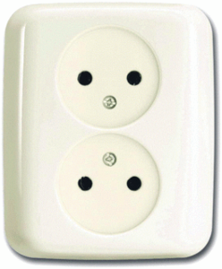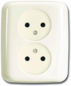 Abb Busch-Jaeger SI wandcontactdoos (wcd schakelmat.), beige, uitvoering CEE 7/1 zonder randaarde, aardcontact randaarde clips, 4 actieve contacten (rond), 2 eenheden, 1 fasen, aansluitwijze steekklem, RAL-nummer 1013, geïsoleerde montage