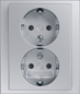 Abb Busch-Jaeger Future wandcontactdoos (wcd schakelmat.), aluminium, uitvoering contactdoos CEE 7/3 (type, aardcontact randaarde clips, 4 actieve contacten (rond), 2 eenheden, 1 fasen, aansluitwijze steekklem, met verhoogde aanraakbeveiliging, RAL-nummer 9006, geïsoleerde montage