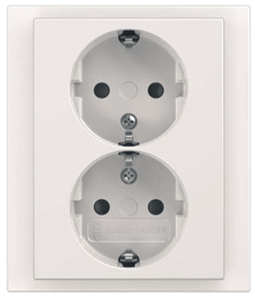 Abb Busch-Jaeger Future wandcontactdoos (wcd schakelmat.), wit, uitvoering contactdoos CEE 7/3 (type, aardcontact randaarde clips, 4 actieve contacten (rond), 2 eenheden, 1 fasen, aansluitwijze steekklem, met verhoogde aanraakbeveiliging, RAL-nummer 9016, geïsoleerde montage