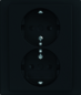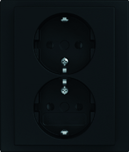 Abb Busch-Jaeger Future wandcontactdoos (wcd schakelmat.), zwart, uitvoering contactdoos CEE 7/3 (type, aardcontact randaarde clips, 4 actieve contacten (rond), 2 eenheden, 1 fasen, aansluitwijze steekklem, met verhoogde aanraakbeveiliging, RAL-nummer 9005, geïsoleerde montage