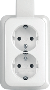 Abb Busch-Jaeger AP wandcontactdoos (wcd schakelmat.), wit, uitvoering contactdoos CEE 7/3 (type, 4 actieve contacten (rond), 2 eenheden, 1 fasen, aansluitwijze steekklem, met verhoogde aanraakbeveiliging, RAL-nummer 9010, geïsoleerde montage