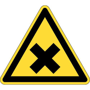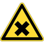 Waarschuwingsbord, Zelfklevend: ja, Stijf: nee, Paneel vorm: Driehoek, Opdruk: Schadelijke of irriterende stoffen, Lengte zijde: 200 mm, Materiaal: Soepel polyester