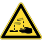 Gevaarteken, Zelfklevend: nee, Stijf: ja, Norm ISO 7010: ja, Paneel vorm: Driehoek, Type bord: Gevaar, Opdruk: Bijtende (corrosieve) stoffen, Lengte zijde: 200 mm, Materiaal: Polypropyleen, Special Covid-19: nee