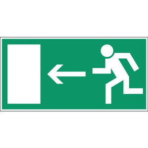 Bord voor ontruiming, Zelfklevend: nee, Stijf: ja, Type bord: Evacuatie, Opdruk: Nooduitgang links, Materiaal: Polypropyleen, Hoogte: 148 mm, Breedte: 297 mm, Model: Standaard