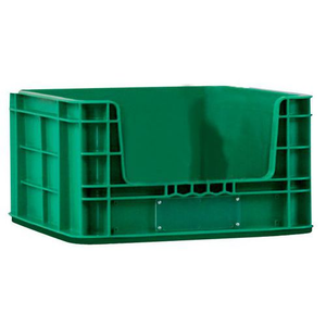 Stapelbare bak met opening aan voorzijde, Totale inhoud: 36 L, Totale hoogte: 240 mm, Totale breedte: 400 mm, Totale lengte: 490 mm, Bak kleur: Groen, Max. belasting: 200 kg, Materiaal: Polypropyleen, Afmeting: Gemiddeld, Gewicht: 1.9 kg, Min. gebruikstemperatuur: 0 °C, Max. gebruikstemperatuur: 70 °C, Gebruik: Sorteren