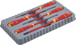 Bahco schroevendraaier set, 2 kruisschroevendraaiers PZ, 3 sleufschroevendraaiers, geïsoleerd, geïsoleerd 1000 V, greepuitvoering 2-componenten, greep overig, norm EN 60900, totaal aantal gereedschappen 5, verpakking doos