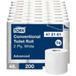 Tork Toiletpapier T4. Kleur: wit. Vouw: 2-laags. Hoeveelheid: Pak van 48 x 200 vellen.
