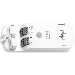 PLEJD | LED-75 | LED Driver 75 W wordt gebruikt voor instelbare of eenkleurige 12/24 V DC LED-strips voor een belasting tot 75 W. LED-75 heeft ΘΘn ingang voor bediening en kan ook draadloos worden bediend via de app of andere producten van Plejd. Het kan