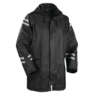 Functionaliteit: Wind- en waterdicht met gelaste naden. Details: Plastic knopen. Afneembare, verstelbare capuchon. D-ring. Zakken: Voorzakken, waarvan één met D-ring. Sluiting vooraan: Stormsluiting met knopen. Verborgen 2-weg rits in kunststof. Reflectie: Reflecterend tape op mouwen en rug. Afwerking: Regengoot met drukknopen. Verstelbaar mouweinde met klittenband. Certificering: EN 343, Klasse 3,1.