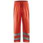 High Vis regenbroek voor diegenen met werkzaamheden die lichte en gladde regenkleding nodig hebben. Gemaakt van sterk wind- en waterdicht materiaal met gelaste naden en voorzien van reflecterende tape voor- en achter. De broek heeft een elastische taille met trekkoordje in de taille en met drukknopen verstelbare broekspijpen. Gecertificeerd volgens EN 343, Klasse 3.1, beschermende kleding tegen slecht weer en EN ISO 20471, Klasse 2, beschermende kleding met hoge zichtbaarheid.