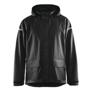 Deze lichtgewicht, flexibele regenjas met verlengd rugpand en trekkoord voor juiste pasvorm is perfect voor regenachtige weersomstandighedenwanneer doorwerken de hoogste prioriteit heeft. Voorzien van capuchon die naar behoefte kan worden aangepast of verwijderd, eenvoudig toegankelijke voorzakken en sterke 2-wegritssluiting met rits die helemaal tot aan de kraag reikt. Met donkere, discrete reflectie op de mouwen en de achterkant die je zichtbaar maken in het donker. De mouwmanchetten zijn verstelbaar met klittenbandsluiting. Gecertificeerd volgens EN 343, Klasse 3.1, bescherming tegen slecht weer.