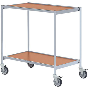 Verrijdbare tafel grijs, Max. belasting: 150 kg, Totale hoogte: 780 mm, Totale breedte: 460 mm, Totale lengte: 834 mm, Aantal plateaus: 2, Nuttige breedte plateau: 420 mm, Nuttige lengte plateau: 800 mm, Wiel loopvlak: Rubber, Legbord kleur: Beuken