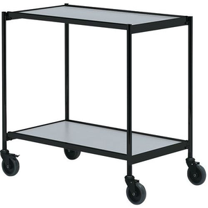 Verrijdbare tafel zwart, Max. belasting: 150 kg, Totale hoogte: 780 mm, Totale breedte: 460 mm, Totale lengte: 834 mm, Aantal plateaus: 2, Nuttige breedte plateau: 420 mm, Nuttige lengte plateau: 800 mm, Wiel loopvlak: Rubber, Legbord kleur: Grijs