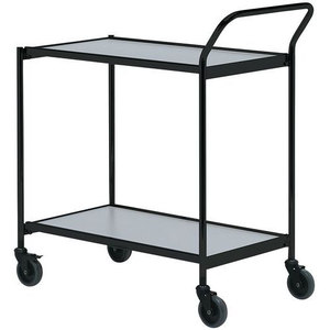 Verrijdbare tafel zwart, Zwenkwiel Ø: 200 mm, Max. belasting: 150 kg, Totale hoogte: 946 mm, Totale breedte: 460 mm, Totale lengte: 1129 mm, Wiel loopvlak: Rubber, Aantal plateaus: 2, Legbord kleur: Grijs, Dikte tafelblad: 12 mm