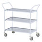 Verrijdbare tafel met grijze afwerking, Zwenkwiel Ø: 100 mm, Max. belasting: 150 kg, Totale hoogte: 946 mm, Totale breedte: 460 mm, Totale lengte: 1224 mm, Wiel loopvlak: Rubber, Aantal plateaus: 2, Type: Table roulante, Frame kleur: Grijs, Nuttige breedte plateau: 420 mm, Type wiel: 4 roulettes pivotantes dont 2 avec freins, Aantal handgrepen: 2, Dikte tafelblad: 12 mm, Breedte loopvlak: 25 mm, Max. belasting per afdekplaat: 100 kg