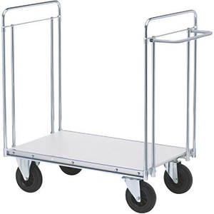 Plateauwagen, Zwenkwiel Ø: 200 mm, Max. belasting: 500 kg, Totale hoogte: 1180 mm, Totale breedte: 570 mm, Totale lengte: 1400 mm, Wiel loopvlak: Rubber, Aantal plateaus: 1, Legbord kleur: Grijs, Nuttige lengte plateau: 1200 mm, Nuttige breedte plateau: 500 mm, Dikte tafelblad: 12 mm