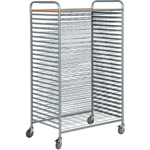 Droogtrolley, Zwenkwiel Ø: 100 mm, Max. belasting: 100 kg, Totale hoogte: 1640 mm, Totale breedte: 600 mm, Totale lengte: 950 mm, Aantal plateaus: 25, Frame kleur: Grijs, Legbord kleur: Grijs, Nuttige lengte plateau: 890 mm, Nuttige breedte plateau: 550 mm, Type wiel: 4 zwenkwielen 2 met rem, Recyclebare verpakking: Ja - 100%, Gerecyclede verpakkingen: 70 %, Recyclebaar product: Ja - 100%, Gerecycled product: 15 %