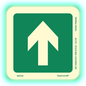 Luminescent bord 100 x 100 mm, luminescente sticker voor de vloer met beschermlaag. Richtingspijl conform de norm ISO 7010. Witte pijl tegen groene achtergrond.
