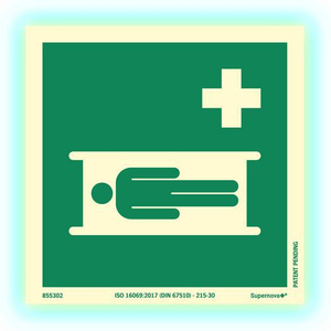 Transparant aluminium bord met compact formaat van 150 x 150 mm. Gepatenteerde Supernova+-technologie voor uitzonderlijke luminescentie in het donker. Voldoet aan de norm ISO 7010 voor veiligheidsborden. Voldoet aan de prestatie-eisen van de norm ISO 16069. Ideaal voor het aanduiden van de locatie van brancards voor noodgevallen.