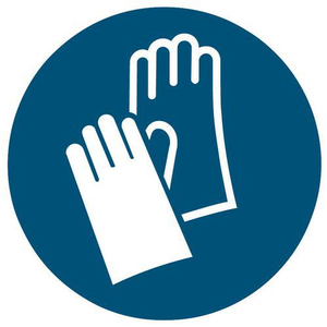 Gebodsbord, Zelfklevend: ja, Stijf: nee, Norm ISO 7010: ja, Lean Management: ja, Paneel vorm: Rond, Type bord: Verplichting, Opdruk: Veiligheidshandschoenen verplicht, Materiaal: Polyester, Ø: 315 mm, Special Covid-19: nee