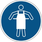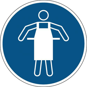 Gebodsbord met pictogram beschermingsschort gebruiken. Bestand tegen temperaturen van - 40 tot 120 °C. Voorgeboord paneel met 4 gaten voor bevestiging met schroeven.