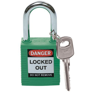 Veiligheidshangslot, Kleur: Groen, Breedte: 19.50 mm, Hoogte: 86.50 mm, Beugel Ø: 6.50 mm, Aantal sleutels: 1, Materiaal omhulsel: Nylon, Handgreep materiaal: Staal, Type slot: Sleutelhouder