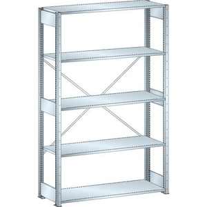 Universele stelling, Max. belasting per legbord: 160 kg, Hoogte: 2200 mm, Aantal legborden: 5, Type legbord: Massief, Breedte: 1300 mm, Diepte: 500 mm, Coating: Gegalvaniseerd, Type element: Basis, Legbord materiaal: Staal, Kleur juk: Zilver/verzinkt, Legbord kleur: Zilver/verzinkt, Stelling voor: Losse onderdelen, Configureerbaar: ja, Max. belasting: 2800 kg, Montage: Zelfbouw, Gerecyclede verpakkingen: 50 %, Recyclebaar product: Ja - 100%, Gerecycled product: 25 %, Eco-verantwoordelijke aanpak: ja, Aantal voeten: 4, Staander breedte: 50 mm, Aantal jukken: 2, Type juk: Open, Dikte legbord: 25 mm, Type stelling: Lichte stelling