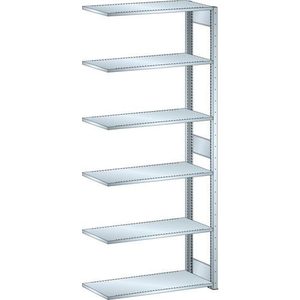 Universele stelling, Max. belasting per legbord: 220 kg, Hoogte: 2500 mm, Aantal legborden: 6, Type legbord: Massief, Breedte: 1000 mm, Diepte: 400 mm, Coating: Gegalvaniseerd, Type element: Aanbouw, Legbord materiaal: Staal, Kleur juk: Zilver/verzinkt, Legbord kleur: Zilver/verzinkt, Stelling voor: Losse onderdelen, Configureerbaar: ja, Max. belasting: 2800 kg, Montage: Zelfbouw, Gerecyclede verpakkingen: 50 %, Recyclebaar product: Ja - 100%, Gerecycled product: 25 %, Eco-verantwoordelijke aanpak: ja, Frame materiaal: Staal, Aantal voeten: 2, Staander breedte: 50 mm, Aantal jukken: 1, Type juk: Open, Dikte legbord: 25 mm, Type stelling: Lichte stelling