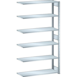Universele stelling, Max. belasting per legbord: 160 kg, Hoogte: 2500 mm, Aantal legborden: 6, Type legbord: Massief, Breedte: 1300 mm, Diepte: 400 mm, Coating: Gegalvaniseerd, Type element: Aanbouw, Legbord materiaal: Staal, Kleur juk: Zilver/verzinkt, Legbord kleur: Zilver/verzinkt, Stelling voor: Losse onderdelen, Configureerbaar: ja, Max. belasting: 2800 kg, Montage: Zelfbouw, Gerecyclede verpakkingen: 50 %, Recyclebaar product: Ja - 100%, Gerecycled product: 25 %, Eco-verantwoordelijke aanpak: ja, Frame materiaal: Staal, Aantal voeten: 2, Staander breedte: 50 mm, Aantal jukken: 1, Type juk: Open, Dikte legbord: 25 mm, Type stelling: Lichte stelling