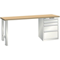 Werkbank 27x36E (bxdxh) 1500x800x850 mm, Max. belasting: 1500 kg, Totale hoogte: 850 mm, Totale breedte: 1500 mm, Werkbank blad materiaal: Massief beuk, Totale diepte: 800 mm, Aantal laden: 4, Kleur: Lichtgrijs, Lade kleur: Lichtgrijs, RAL: 9002, Max. belasting lade: 75 kg, Special Covid-19: nee, Gerecyclede verpakkingen: 50 %, Gerecycled product: 20 %