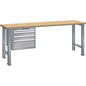 Werkbank 27x36E (bxdxh) 2000x800x850 mm, Max. belasting: 500 kg, Totale hoogte: 850 mm, Totale breedte: 2000 mm, Werkbank blad materiaal: Massief beuk, Totale diepte: 800 mm, Aantal laden: 4, Kleur: Grijs/zilver, Lade kleur: Grijs/zilver, Max. belasting lade: 75 kg, Special Covid-19: nee, Gerecyclede verpakkingen: 50 %, Gerecycled product: 20 %