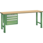 Werkbank 27x36E (bxdxh) 2000x800x900 mm, Max. belasting: 500 kg, Totale hoogte: 900 mm, Totale breedte: 2000 mm, Werkbank blad materiaal: Massief beuk, Totale diepte: 800 mm, Aantal laden: 4, Kleur: Groen, Lade kleur: Groen, RAL: 6011, Max. belasting lade: 75 kg, Special Covid-19: nee, Gerecyclede verpakkingen: 50 %, Gerecycled product: 20 %