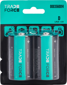 Tradeforce batterij, niet oplaadbaar, diameter 32.3mm, uitvoering alkali-Mangaan, nom. spanning 1.5V, grootte aanduiding mono, hoogte incl. pool 59.5mm, capaciteit 16500mAh, IEC-aanduiding LR 20, 1 cellen, gewicht 146g, overige aanduidingen D/AM 1