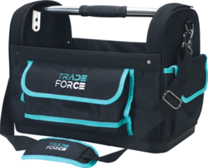 Tradeforce gereedschapskist/-tas, stof, zwart, (hxbxd) 450x260x350mm, uitvoering gereedschapskist, kwaliteit polyester, met schouderriem, met schuim, totaal aantal vakken 14